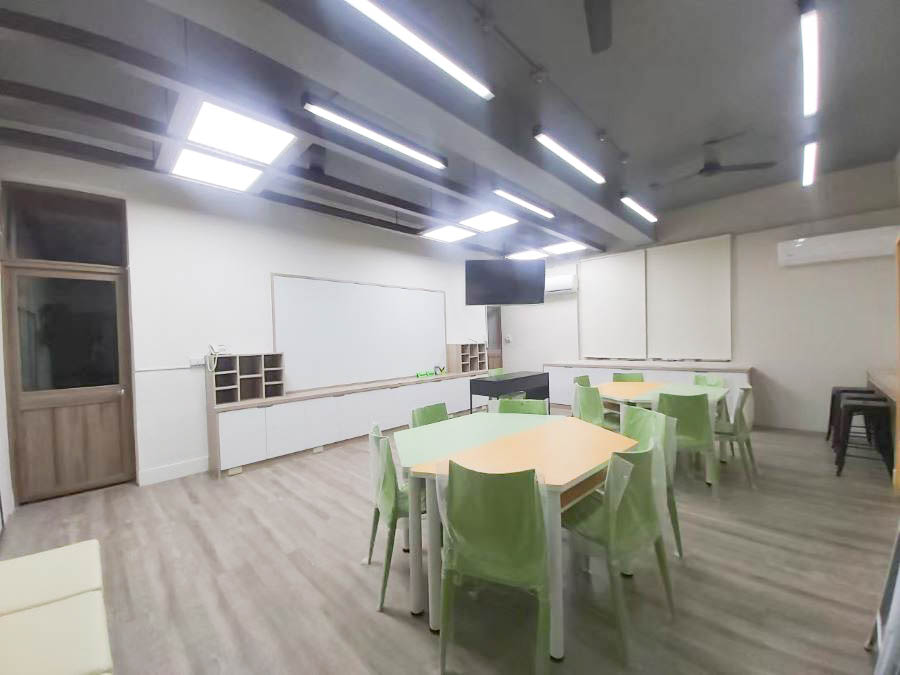 設備充足讓學生可以獲得完善的教學品質,門口旁的樹木裝飾也可擺放一些物品,不僅美觀更是實用。